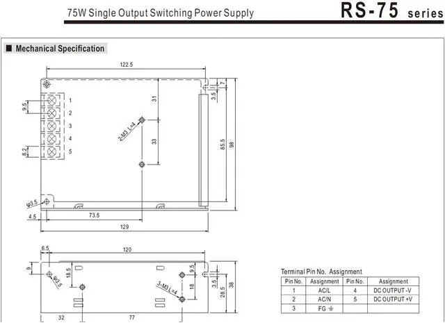 Single Output Switching Power Supply AC-DC RS-75-48 48V 1.6A