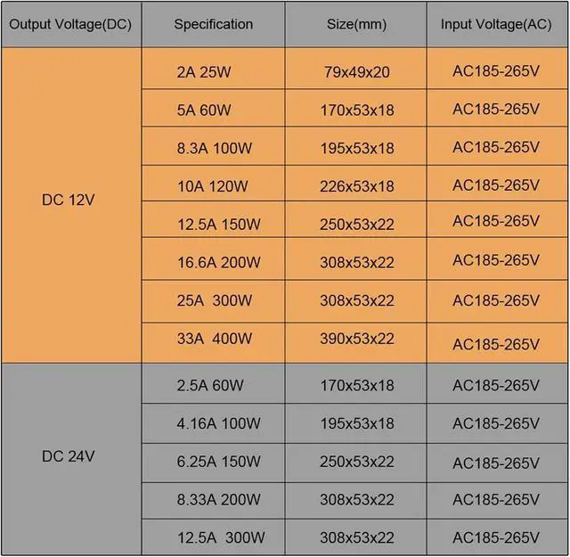Available in multiple output power options (25W, 60W, 100W, 150W, 200W, 300W, 400W) to meet various application needs.