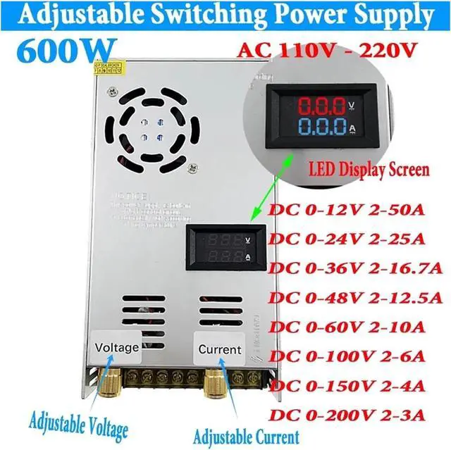 2. Multiple output options: With a voltage range of 0-12V, 24V, 36V, 48V, 60V, 100V, 150V, and 200V, this power supply offers flexible output options to suit different needs.