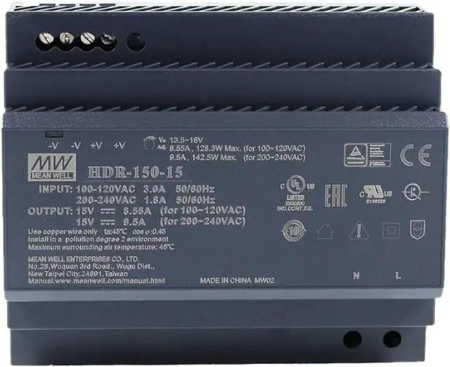 1PCS HDR-150 HDR-150-12 HDR-150-15 HDR-150-24 HDR-150-48 Switching Power Supply 150W Stepped Guide Rail Type(HDR-150-15)