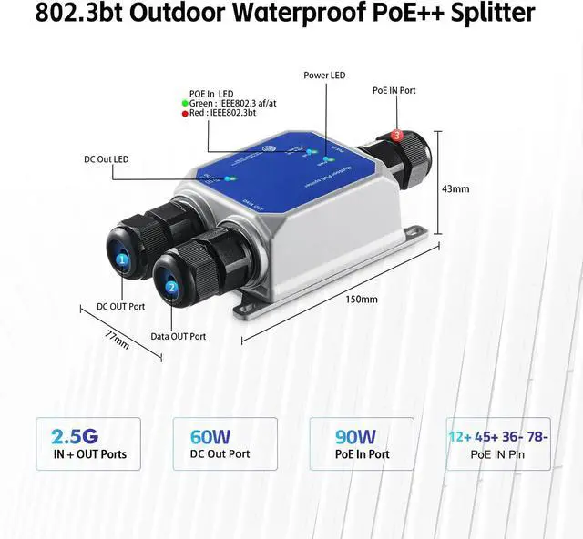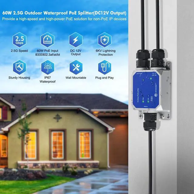 Easy Installation: No need for additional power adapter, powered by POE network. LED indicator, Meta case, support wall mount, small size, save space, suitable for more positions. Separate the data and 12V power supply from the POE network to connect to devices, such as cameras, APs, etc.