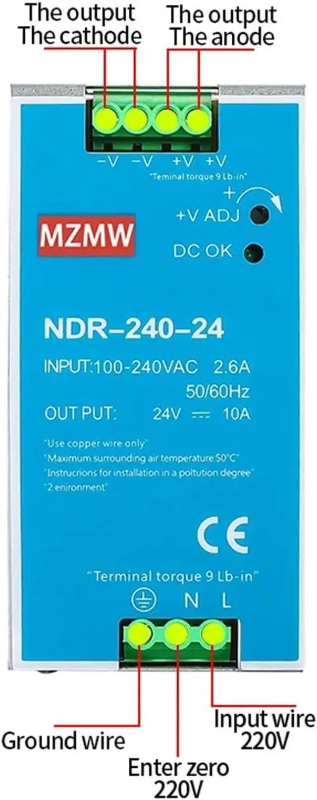 • 240W Industrial DIN Rail Switching Power Supply 12V 24V 48V AC/DC Single Output Power NDR-240-12 NDR-240-24 NDR-240-48