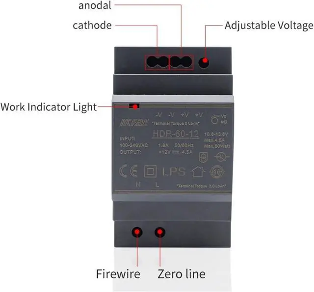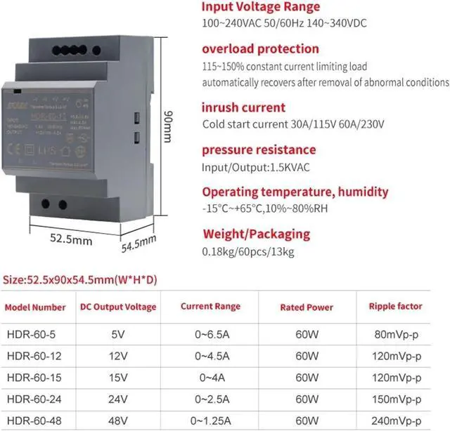 HDR-60 60W Input 100-240V Output 5V 12V 24V 48V Ultra Slim DIN Rail Power Supply Switching Mode Power Supply(24V)