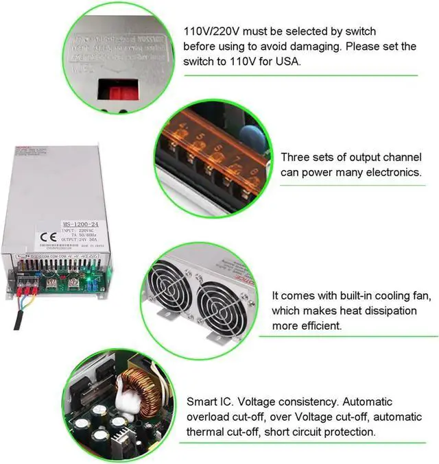 1. High Power Output: The Regulated Switching Power Supply MS-1500W delivers a maximum output power of over 500W, making it for powering high-demand electronic devices and equipment.