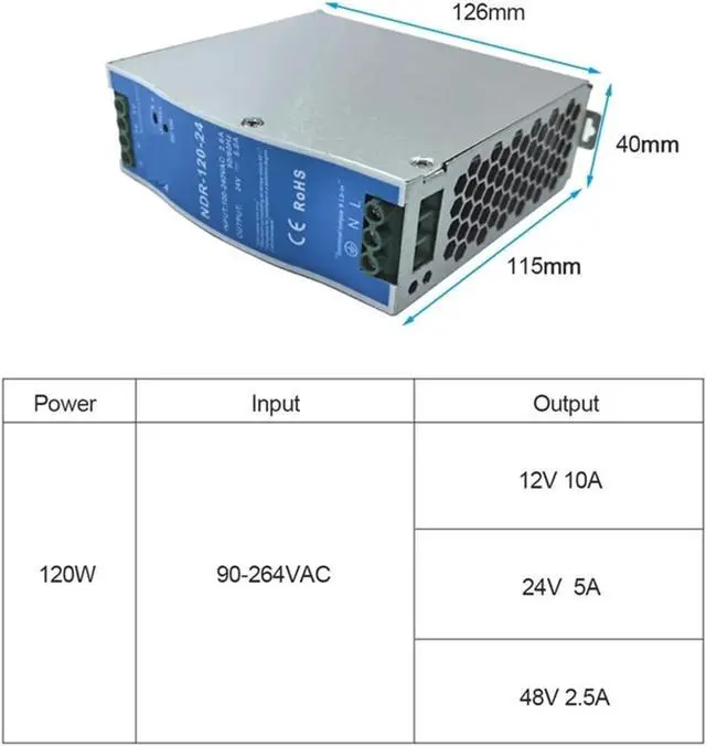 NDR-120-12 NDR-120-24 120W Switching Power Supply DC 12V 10A 24V 5A Industrial Din Rail 120W Slim Single Output(12V_120W)