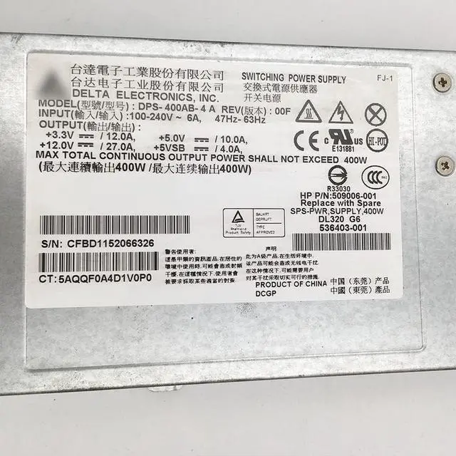 • For DL320 G6 DL120G6 DL120G7 400W Switching Power Supply DPS-400AB-4 A 509006-001 536403-001 Pre-shipment Test
