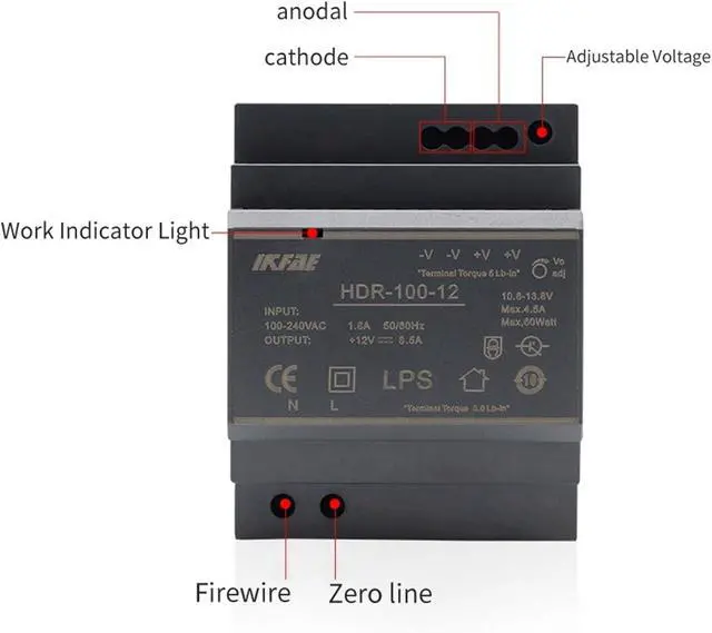 HDR-100 100W Input 100-240V Output 5V 12V 24V 48V Ultra Slim DIN Rail Power Supply Switching Mode Power Supply(12V)