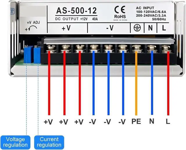 1pcs AS Series AC-DC 500W SMPS Switching Power Supply Input 110V 220V Output 12V 24V 36V 48V 60V Adjustable CCCV High Power(12V_500W)