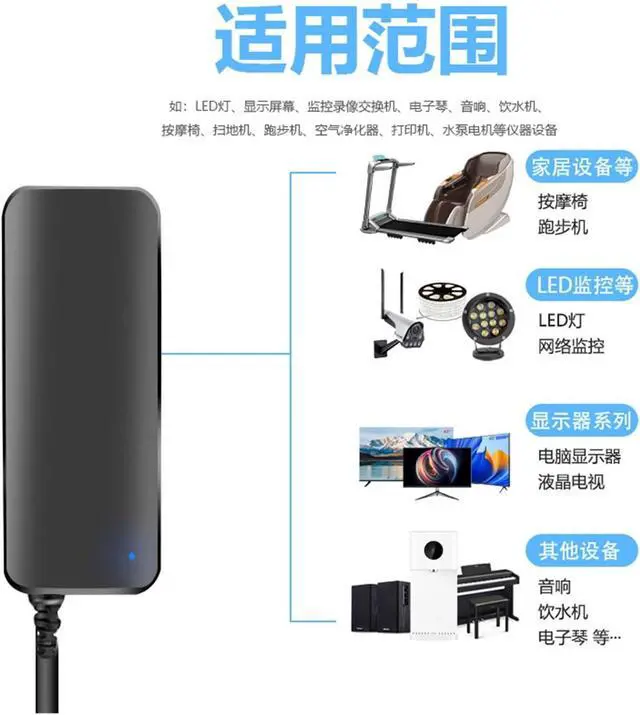 Chargers & Adapters Protection Type: Overcurrent Overvoltage Short Circuit Protection Applications: LED displays, surveillance video recorders, 3D printers, mechanical equipment, etc. Adapter cable length: 1.2