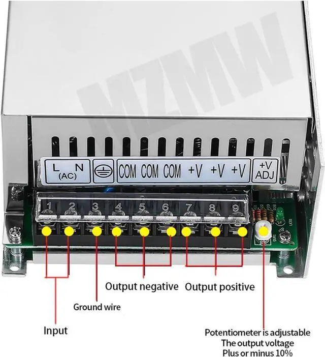 High-efficiency 600W AC/DC switching power supply designed for various voltage outputs including 12V, 24V, 36V, 48V, 60V, 72V, and 110V.