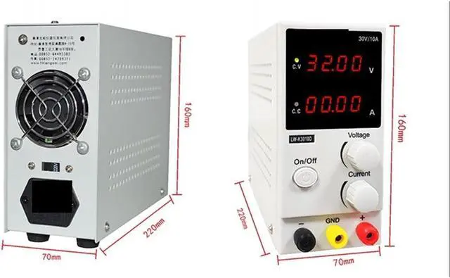 Equipped with a 4-digit high-precision LED screen, clearly displaying voltage, current, and power. It features coarse and fine adjustment knobs for quick or precise parameter setting, offering professional and convenient operation.