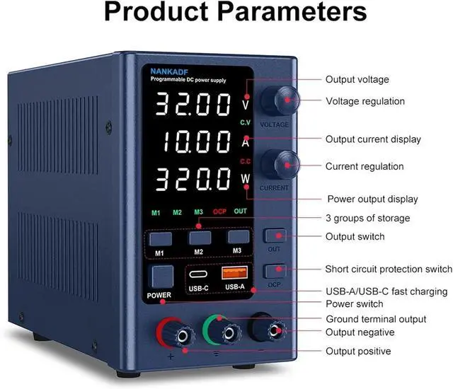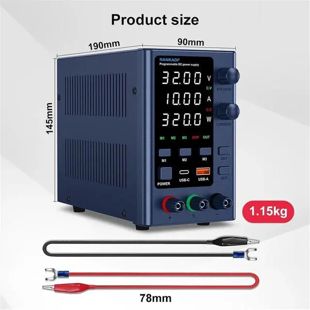 • 1PCS Adjustable switching power supply with 4-digit LED display; 5V/3.6A USB/Tape-C fast charging with encoder 3-group memory