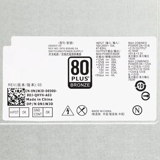 D850EF-00 Power Supply Replaces PSU Model Numbers D850EF-00, HU850EF-00, DPS-850AB-2A, DPS-850AB-2 A 850W power supply replacement