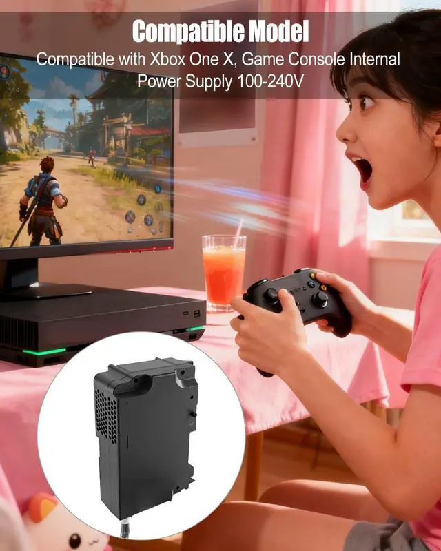Compatible Model: Internal power supply replacement compatible with Xbox One X, interface perfectly matches console's requirements, providing stable and efficient power, plug and play, requiring no additional setup, and delivers near original power and a smooth gaming experience
