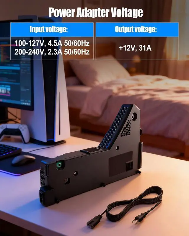 Power Adapter Voltage: Game console internal power supply, input voltage is 100-127V, 4.5A 50/60Hz, 200-240V, 2.3A 50/60Hz, output voltage is +12V, 31A, please confirm power supply specifications required by your console before purchasing to ensure perfect compatibility and optimal performance