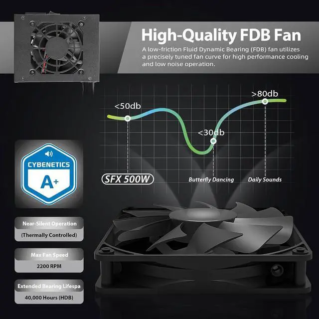 2. [Silent Automatic Temperature Control] The 90mm hydraulic bearing fan adjusts its speed according to the load, maintaining a low decibel noise level, allowing for silent operation in home theaters or offices. Self-heating fan power module