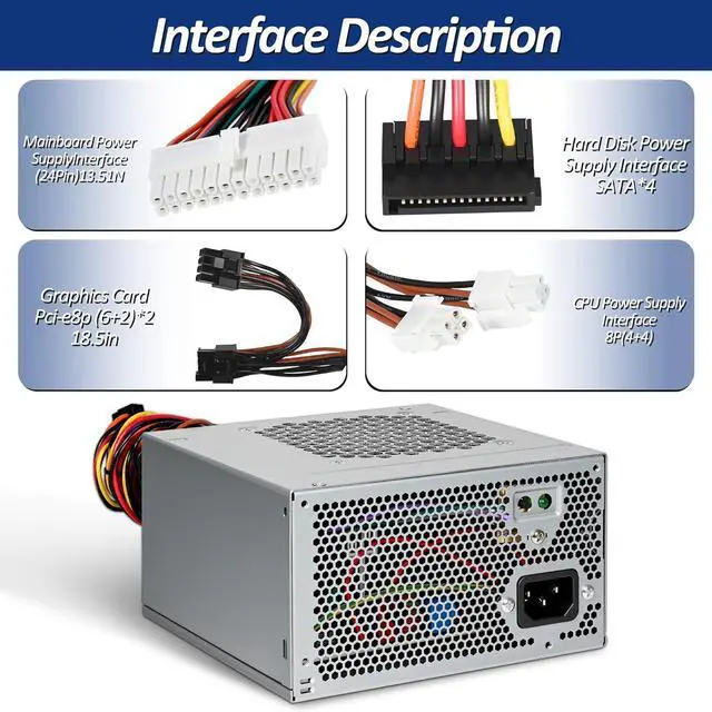Advanced Temperature Control: HU460AM-01 Power Supply adopts the latest temperature control system, equipped with a 3.54-inch noiseless fan that will adjust the speed according to the CPU and other data