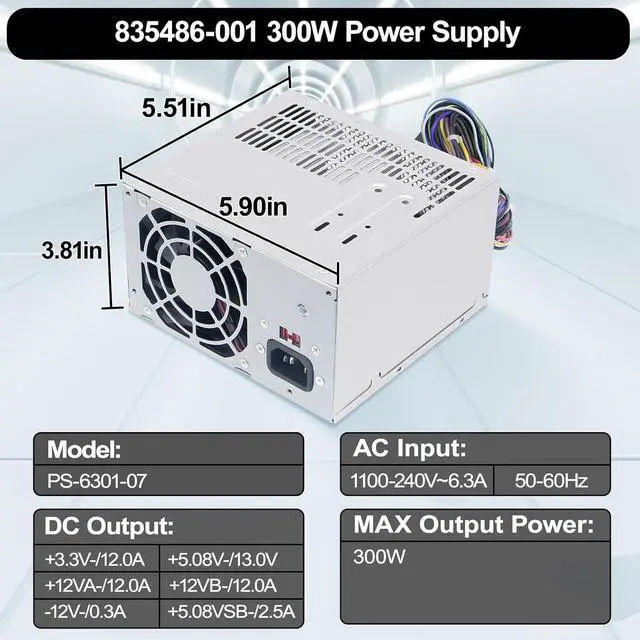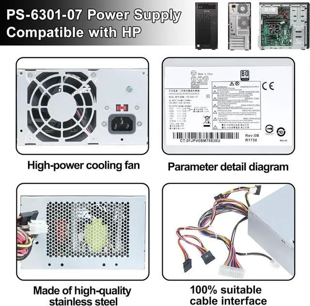 PS-6301-07 Power Supply Compatibility300W PS-6301-07 power supply compatible with 300W HP power supply compatible with HP Omen 510 HP Omen 560 HP Omen 570 HP ProLiant ML10 Gen9 Server.