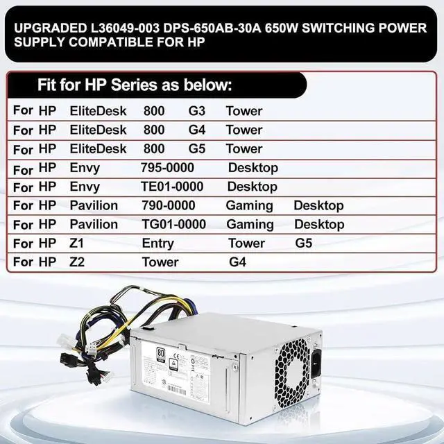 [BOX CONTENT & PART NUMBERS] Box contains 1 power adapter compatible with DPS-650AB-30A and part numbers L36048 003, L36049 003, L57253 003; designed for Z2 G4, Z1 for G5 and 800 G3/G4/G5 TE01/TG01 systems.