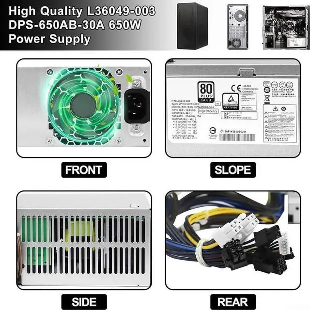 [BOX CONTENT & PART NUMBERS] Box contains 1 power adapter compatible with DPS-650AB-30A and part numbers L36048 003, L36049 003, L57253 003; designed for Z2 G4, Z1 for G5 and 800 G3/G4/G5 TE01/TG01 systems.