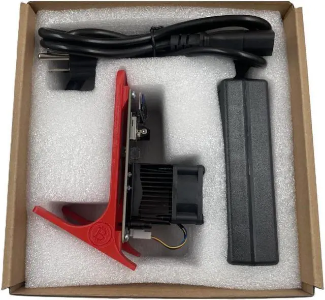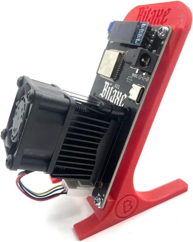 Complete Package with Power Supply and Stand Every Bitaxe Gamma 601 comes with a power supply and a high - quality 3D - printed stand. The power supply provides a stable and reliable power source for your miner, while the stand elevates the device, improving air circulation and further enhancing cooling efficiency. It's a complete package that allows you to start mining right out of the box.