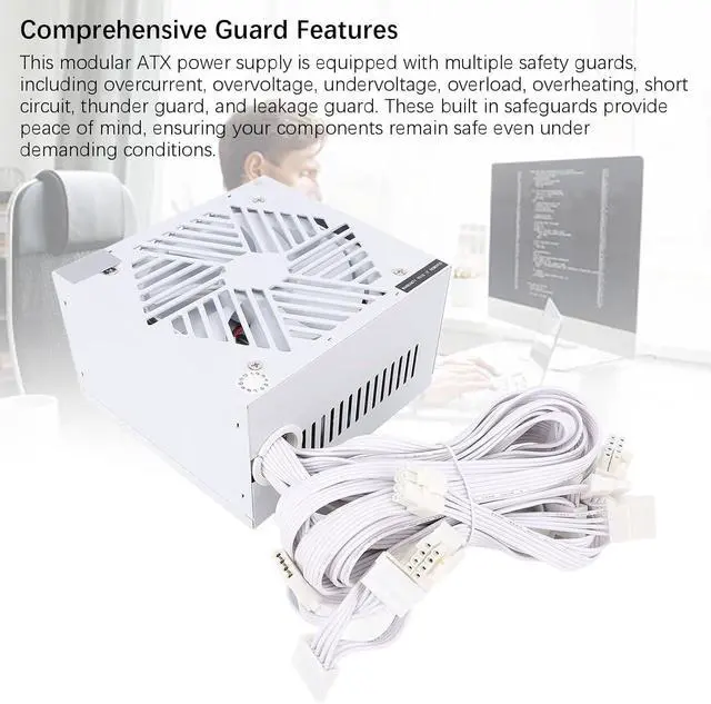 Comprehensive Guard Features: This modular ATX power supply is equipped with multiple safety guards, including overcurrent, overvoltage, undervoltage, overload, overheating, short circuit, thunder guard, and leakage guard. These built in safeguards provide peace of mind, ensuring your components remain safe even under demanding conditions