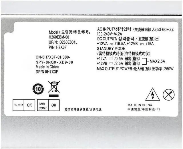 Applicable Models: H260EBM-00 Power Supply, 260W, for Dell for Optiplex 3060, 3050, 3050M, 5050, 5060, 7050, 7060, 3080, 5080, 7080, 5090, 7090, 7060MT, 7080MT, and for Dell V3668, V3669.