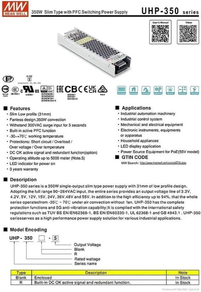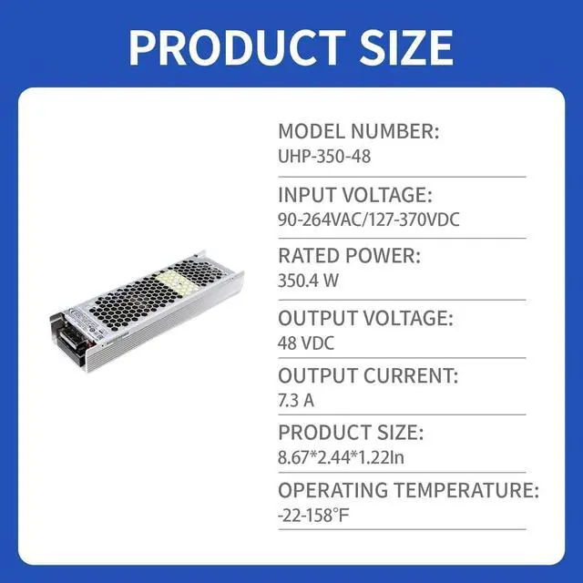 High-Efficiency & Precise Power Supply Boasts a high efficiency of up to 94% with active PFC. Delivers a pure and stable 48V/7.3A output with ±1% voltage accuracy