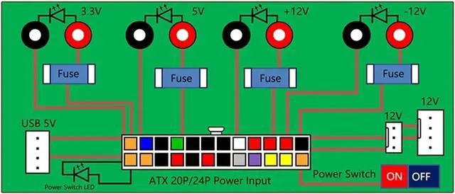 • Electric Circuit 24Pins ATX Benchtop Computer Power Supply Breakout board module connector with USB 5V Port