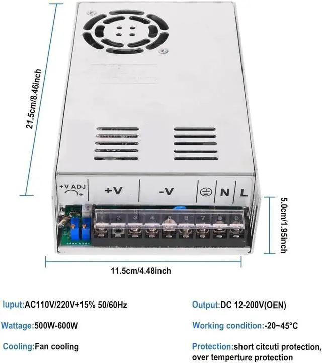 600W Adjustable Power Supply 0-12V 15V 24V 27V 30V 36V 48V 60V 68V 72V 85V 90V 100V 110V 150V 200V Digital Display Power AC-DC No LCD(0-15VDC)