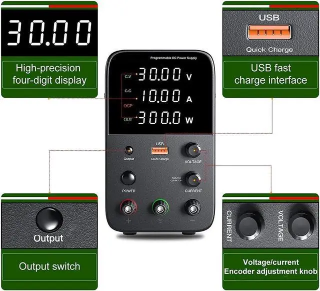 3.LED display of voltage, current and power, high precision and features of voltage stabilization, current limiting, and simple operation.