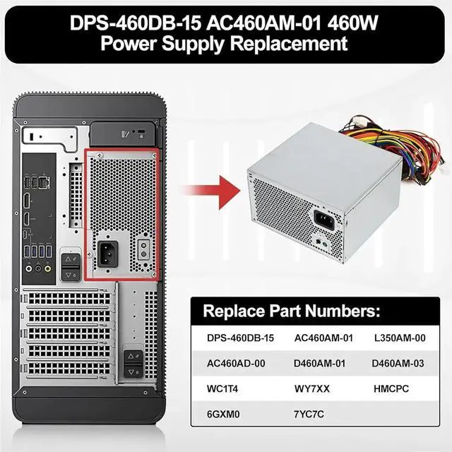 HU460AM-01 460W Power Supply for XPS 8930 8920 8910 8900 8700 8300 R5 DPS-460DB-15 AC460AM-01 WY7XX WC1T4 D460AM-03