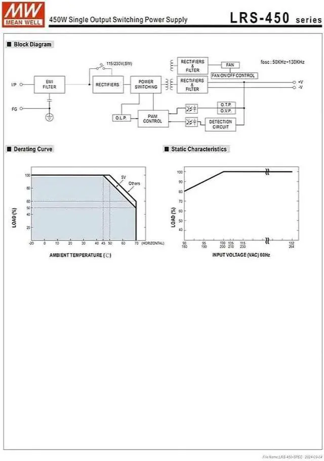 Precise Power, Stable Output Delivers 36V/12.5A DC output with 450W power and a high efficiency of up to 92%. Specially designed to provide efficient and stable power for industrial motors, servo drives and automation equipment