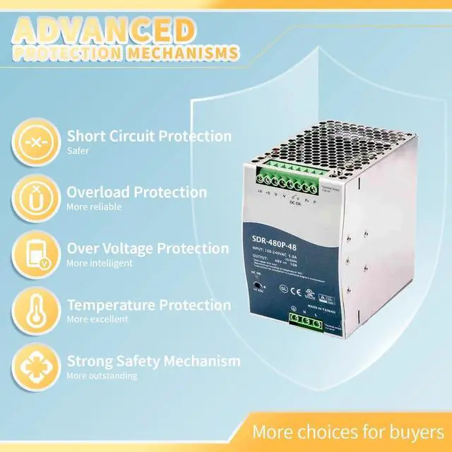 Comprehensive Protection & 3-Year Warranty: Self-recovery protection (short circuit/overload/overvoltage/overtemperature). Built-in DC OK relay for real-time monitoring; 3-year warranty & technical support reduce maintenance costs