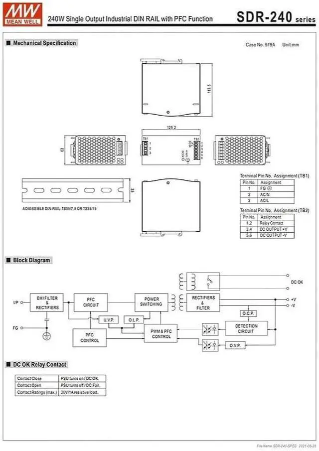Powerful Peak Load Capacity & Monitoring Functionality Supports 150% peak power output (360W for 3 seconds), easily handling surge currents during motor startup. Integrated DC OK relay contact enables seamless integration with remote status monitoring systems