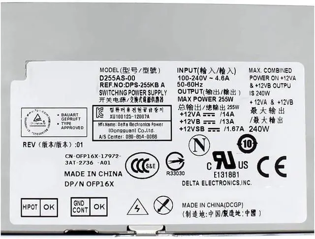 Adjustable Power Supply for Dell for OptiPlex 3020 7020 9020 T1700, 255W Output, Metal Case, Compatible with YH9D7 FP16X T4GWM, 8-pin ATX P1 + 4-pin P2