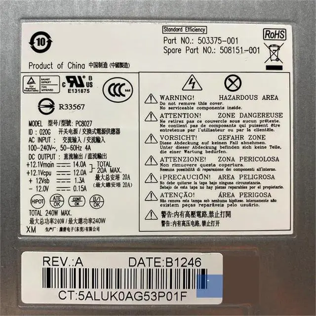 • Power Supply Adapter For 6200 6300 HP-D2402A0 PC8027 503376-001 PS-4241-9HA PSU Adapter Cable