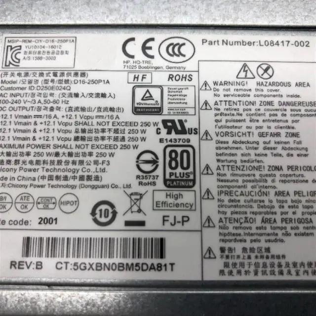 • D16-250P1A For 400 600 800 G3 G4 Power Supply 250W PCH022 L08417-002 901761-002