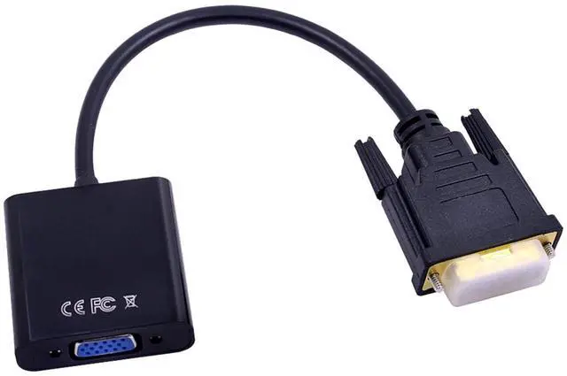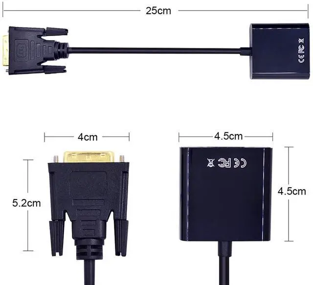 1. Input: 25-pin DVI-D, Male; Output: 15-pin VGA, Female