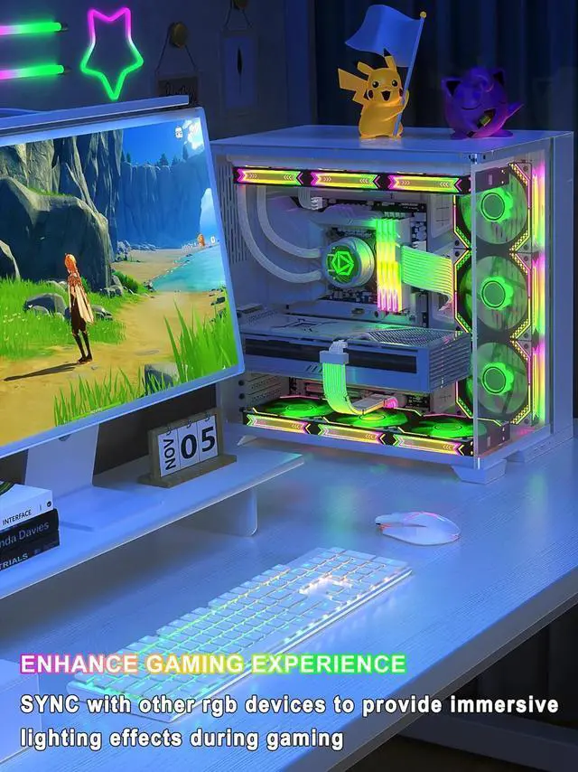 FLEXIBLE & EASY TO MANAGE:These RGB PC cables have been upgraded for optimal flexibility patented LED strips and silicone tubes, and the PSU cable extension is cover by soft PVC material, which is easier to route and bend, and can be easily managed in limited case space