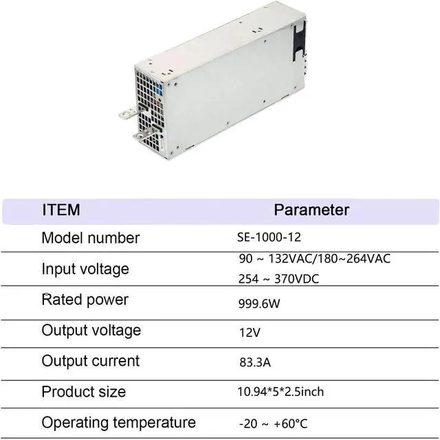 Economical 1000W for Automation Systems: The SE-1000-12 provides nearly 1000W at 12V, an affordable and reliable power solution for a wide range of automation equipment and applications.