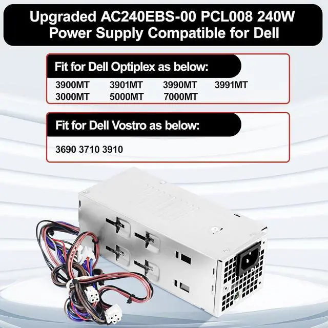 H240EBS-00 Power Supply CompatibilityH240EBS-00 240W PSU Power Supply replacement compatible with Dell Optiplex 3900MT 3901MT 3990MT 3991MT 3000MT 5000MT Vostro 3690 3710 3910 Power Supply