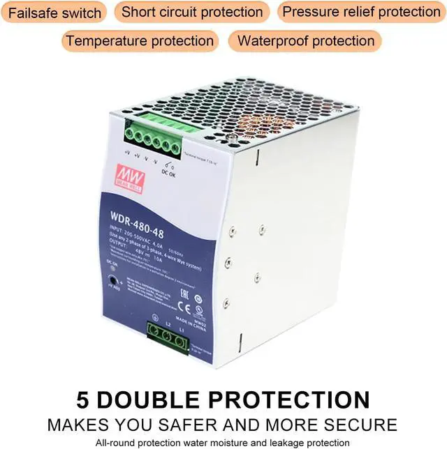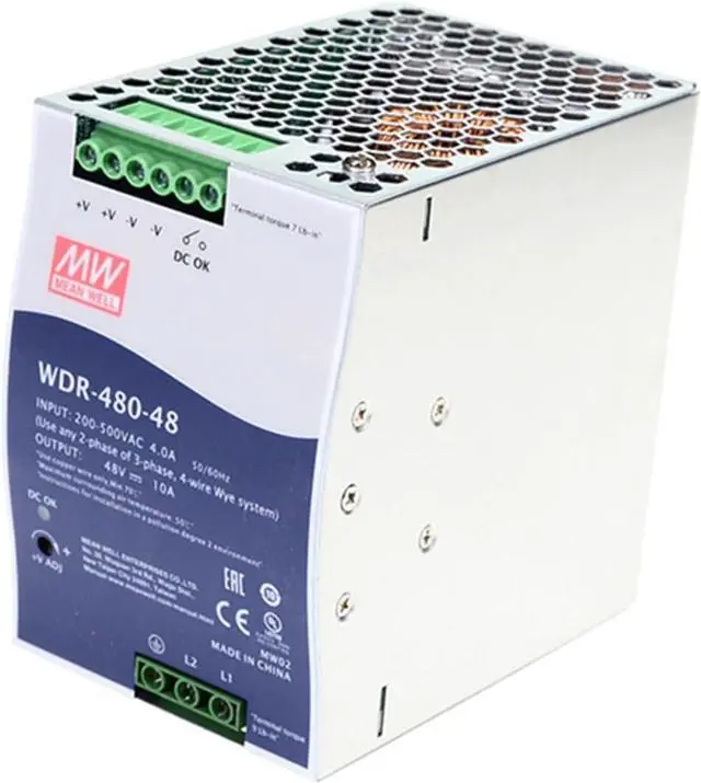 Reliable Power for Remote and Unstable Environments: WDR-480-48 48V/10A DIN Rail Power Supply Ensure consistent power delivery to your critical equipment in challenging locations with the WDR-480-48. This robust 480W power supply features a wide input voltage range and high efficiency, making it ideal for remote areas, unstable grids, and off-grid systems. Key Features for Demanding Applications: Uninterrupted Power in Unstable Grids: The ultra-wide input voltage range (180-550VAC) ensures reliable operation even in areas with fluctuating or unreliable power grids, minimizing downtime and protecting valuable equipment. Perfect for remote locations where stable grid power isn't available. Consistent Performance in Remote Locations: Delivering a stable 48V/10A output, the WDR-480-48 provides dependable power for essential equipment in remote or off-grid locations, where reliable power is crucial. Built for Harsh and Remote Environments: Designed for challenging conditions, the WDR-480-48 can handle temperature extremes and other harsh conditions often encountered in remote deployments, ensuring consistent performance and longevity. Remote Monitoring for Peace of Mind: The integrated DC OK relay enables remote monitoring of the power supply's status, providing valuable insights and allowing for proactive maintenance in remote or unattended installations. Efficient Operation Conserves Power: High efficiency (93%) minimizes power consumption, a critical factor in remote locations with limited power availability or for off-grid systems relying on batteries or alternative energy sources. Technical Specifications: Output Voltage: 48V DC Output Current: 10A Output Power: 480W Input Voltage: 180-550VAC Efficiency: 93% Mounting: DIN Rail DC OK Relay: Included Ensure reliable power, no matter the location. Order the WDR-480-48 today!