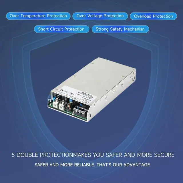 Comprehensive Protection and Cooling: Built-in protections against short circuit, overload, overvoltage, and overtemperature, coupled with an internal DC fan for effective cooling, ensuring reliable operation in demanding environments.