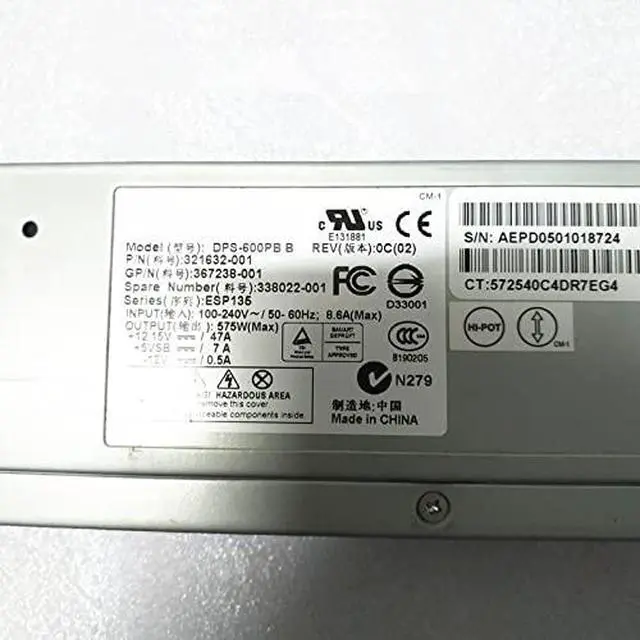 • PSU For DL380G4 600W Power Supply DPS-600PB B 321632-001 338022-001 367238-001 406393-001 321632-501