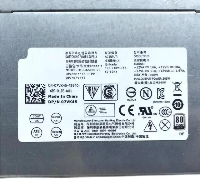 • For 9020 3020 T1700 T3620 365W Power Supply HU365EM-00 D365EM-00 07VK45 7VK45 0T1M43 T1M43 8pin+6pin+4pin