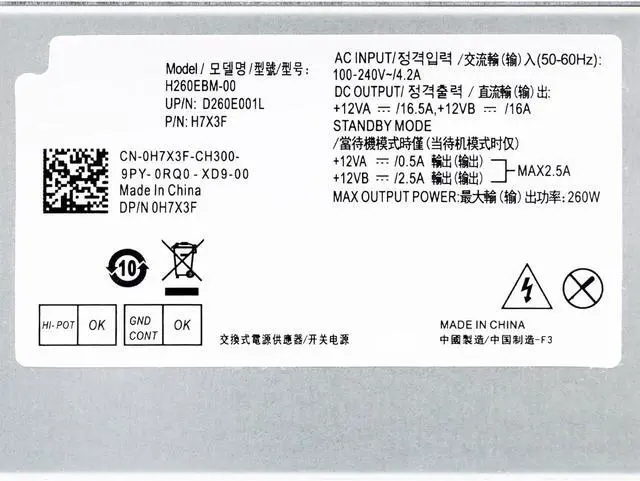 H260EBM-00 260W Power Supply Compatible ModelsH260EBM-00 power supply 260W Power Supply Compatible with Dell Optiplex 3060 Dell Optiplex 3050 Dell Optiplex 3050M Dell Optiplex 5050 Dell Optiplex 5060 Dell Optiplex 7050 Dell Optiplex 7060 Dell Optiplex 3080 Dell Optiplex 5080 Dell Optiplex 7080 Dell Optiplex 5090 Dell Optiplex 7090 Dell Optiplex 7060MT Dell Optiplex 7080MT, Compatible with Dell Inspiron V3668 Dell Inspiron V3669 power supply repair
