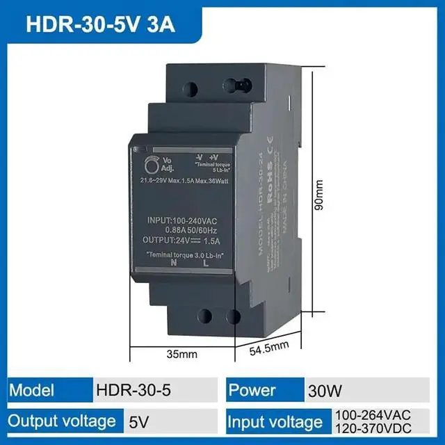 1PCS 15W 30W 60W 100W Ultrathin Switching Power Supply 5V 15V 12V 24V HDR DIN Rail Mounting(HDR-30-5V 3A)