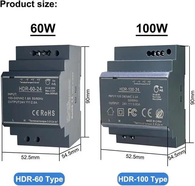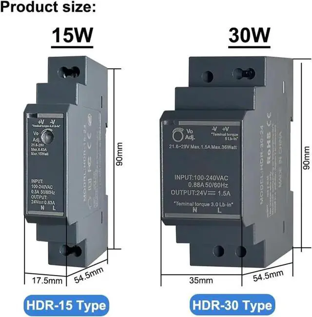 • 1PCS 15W 30W 60W 100W Ultrathin Switching Power Supply 5V 15V 12V 24V HDR DIN Rail Mounting