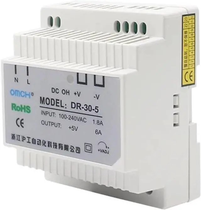1PCS 35/45/60W DIN-Rail Switching Power Supply Single Output 5V 12V 24V AC Converter Power Switch Input 85-264VAC(30W 5V)